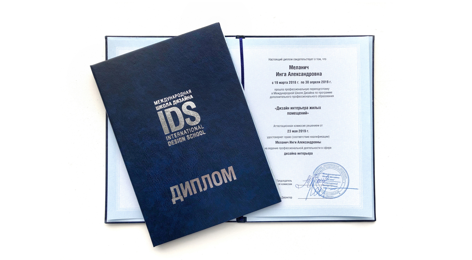 После завершения обучения перед вами будут открыты новые горизонты возможностей. Мы предлагаем больше чем просто образовательную программу – мы предлагаем перспективное будущее в индустрии дизайна и декорирования интерьера. По окончании обучения и успешной защиты итоговой работы, вы получите диплом о профессиональной переподготовке. Он открывает двери передовых дизайн-студий и бюро, где ценятся настоящие знания и умения. Данные о выданном дипломе заносятся в «Федеральный реестр сведений о документах об образовании и (или) о квалификации, документах об обучении».
